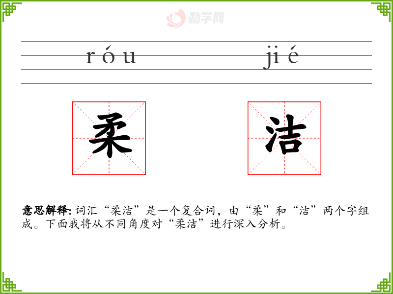 词汇“柔洁”是一个复合词,由“柔”和“洁”两个字组成。下面我将从不同角度对“柔洁”进行深入分析。