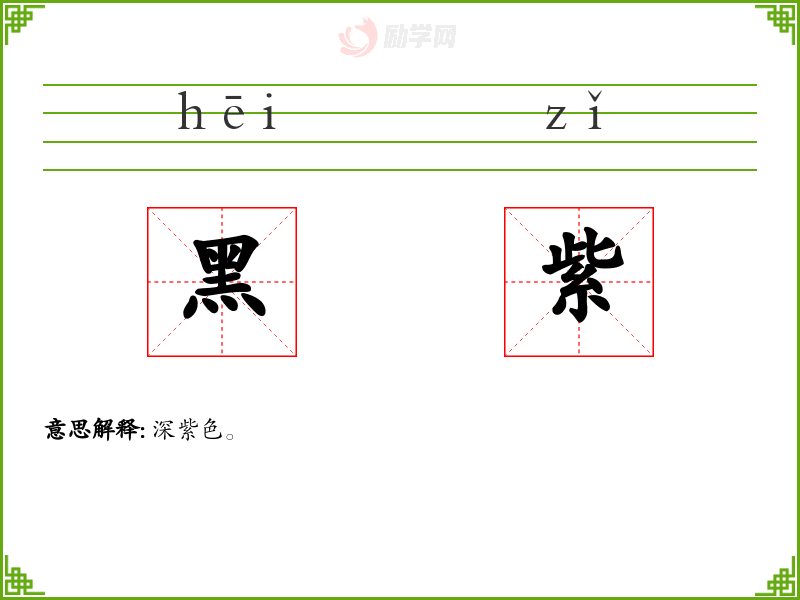 《说文》-黑,火所熏之色也。 《小尔雅》-纯黑而反哺者,谓之乌。 《易·说卦》-坤为黑。 《素问·气交变大论》-黑气乃辱。 《左传·襄公二十九年》-郑公孙黑。 《左传·昭公元报》-楚公子黑肱。 《荀子·大略》-大夫黑弓,礼也。