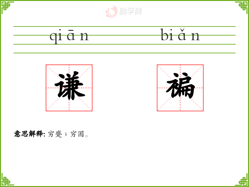 谦褊的意思是:穷蹙﹔穷困。