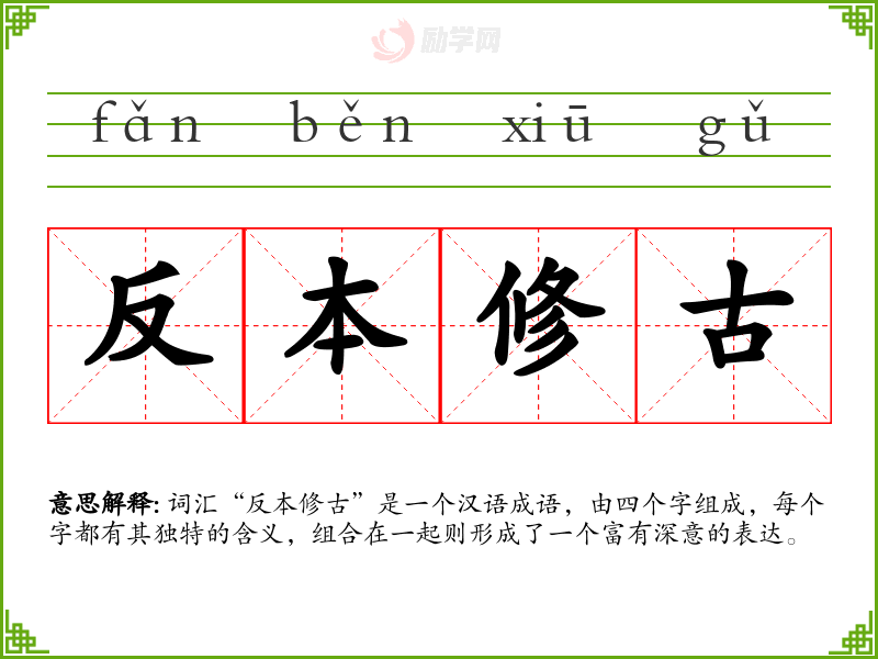 - “反本修古”是一个富有深意的成语,强调了回归本质和学*古代智慧的重要性。