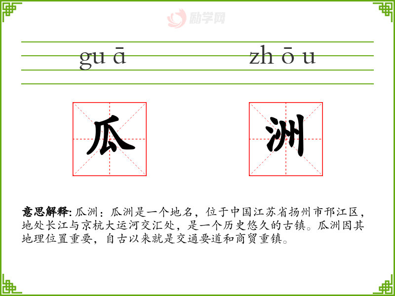 1.瓜洲的拼音是什么?瓜洲怎么读?