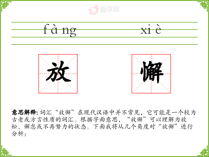 1.放懈的拼音是什么?放懈怎么读?