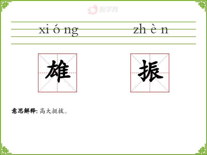 《说文》-雄,鸟父也。 《诗·小雅·正月》-谁知鸟之雌雄。 《诗·邶风·雄雉》-雄雉于飞。 李白《蜀道难》-但见悲鸟号古木,雄飞雌从绕林间。