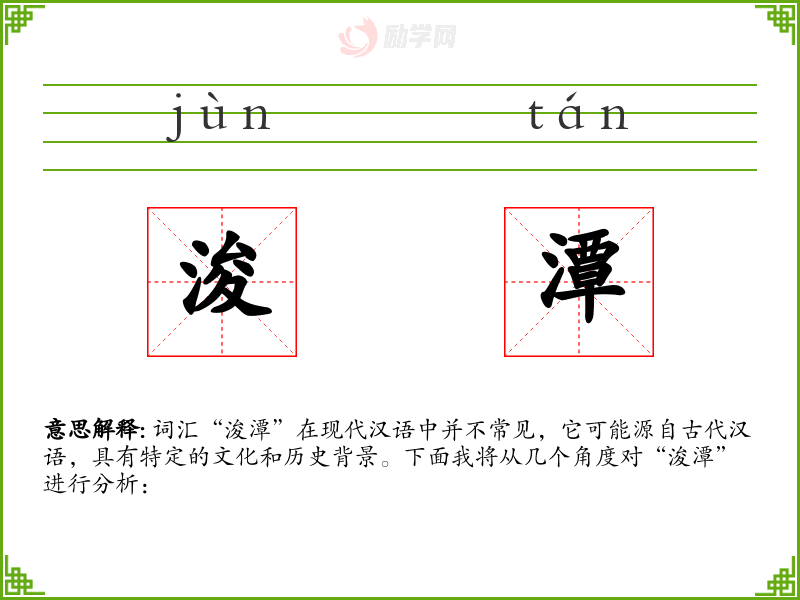 “浚潭”这个词汇虽然不常见,但它承载了丰富的历史和文化信息。在语言学和表达中,了解这样的词汇可以帮助我们更好地理解语言的深度和多样性。通过学和使用这样的词汇,我们可以更丰富地表达我们对历史和文化的认识。