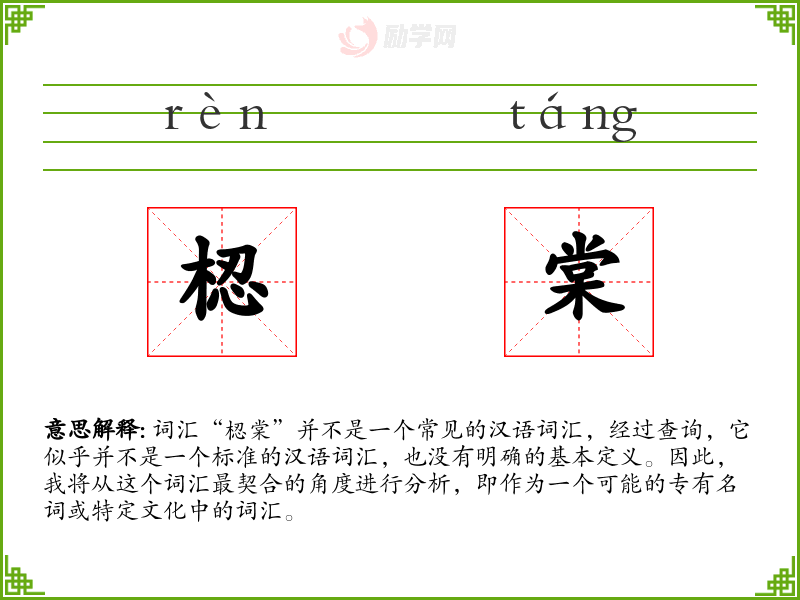 词汇“梕棠”并不是一个常见的汉语词汇,经过查询,它似乎并不是一个标准的汉语词汇,也没有明确的基本定义。因此,我将从这个词汇最契合的角度进行分析,即作为一个可能的专有名词或特定文化中的词汇。