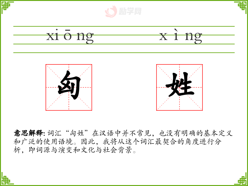 “匈姓”作为一个不常见的词汇,主要与古代匈奴族的历史和文化有关。在语言学*和表达中,了解这样的词汇可以帮助我们更好地理解**的历史和文化。