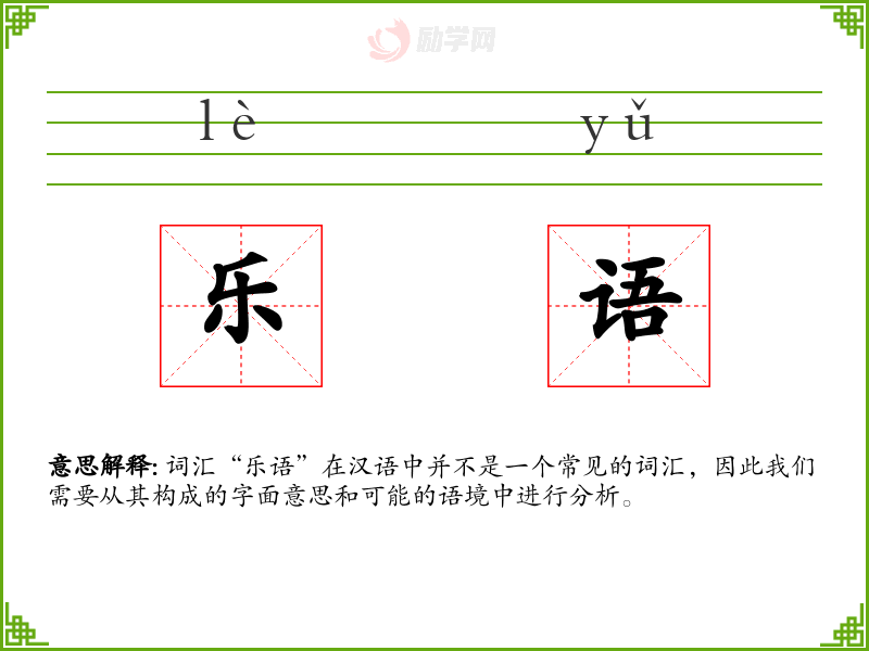 词汇“乐语”在汉语中并不是一个常见的词汇,因此我们需要从其构成的字面意思和可能的语境中进行分析。