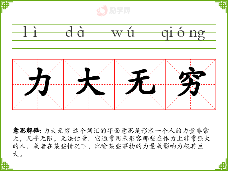 1.力大无穷的拼音是什么?力大无穷怎么读?