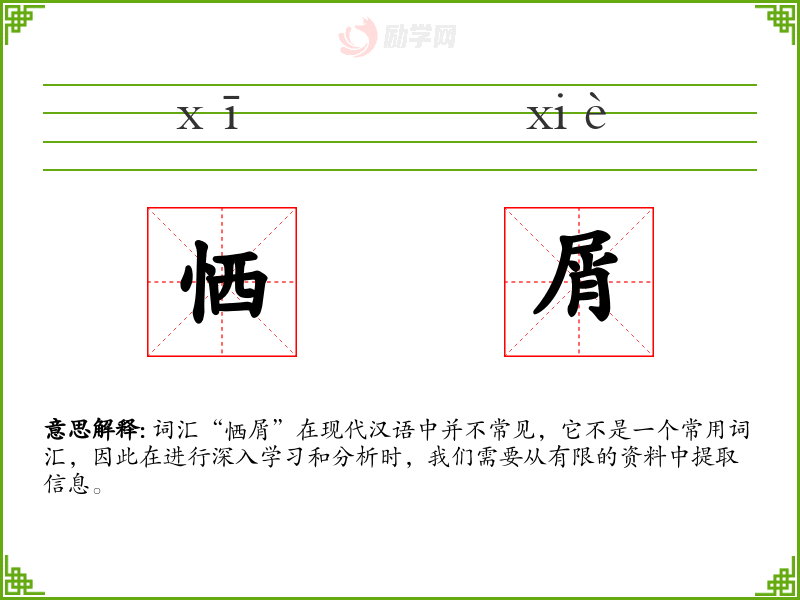 词汇“恓屑”在现代汉语中并不常见,它不是一个常用词汇,因此在进行深入学习和分析时,我们需要从有限的资料中提取信息。