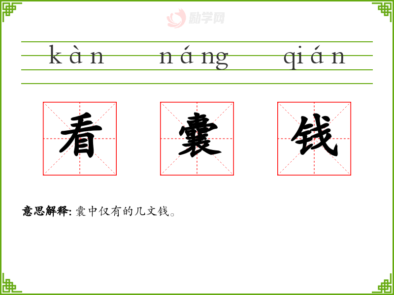 1.看囊钱的拼音是什么?看囊钱怎么读?