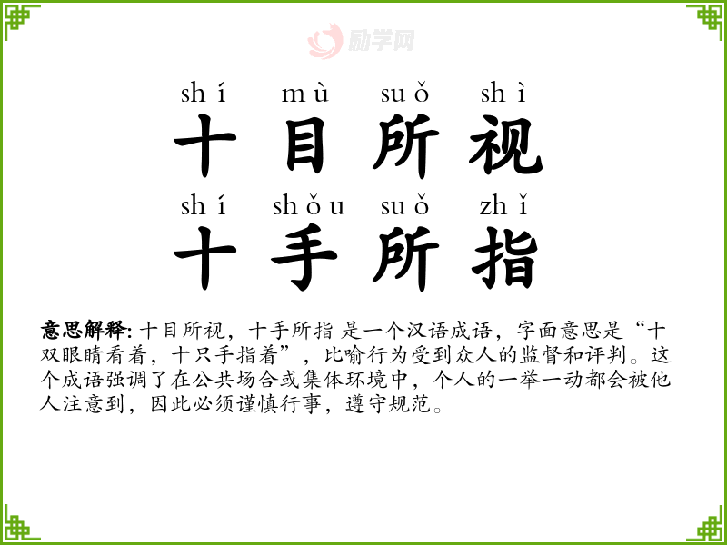 1.十目所视,十手所指的拼音是什么?十目所视,十手所指怎么读?