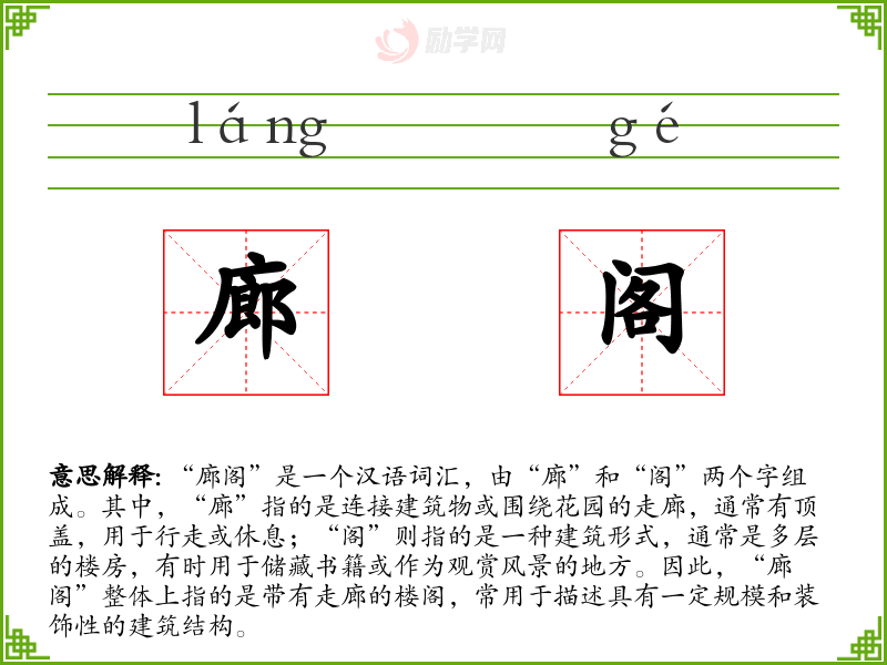 1.廊阁的拼音是什么?廊阁怎么读?