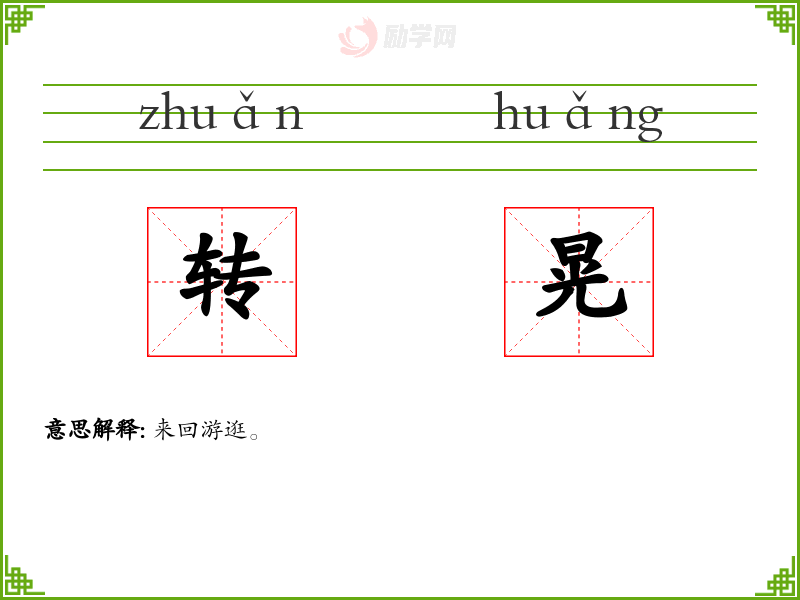 转[ zhuǎn,zhuàn ] 1. 旋转;打转。 【引证】 《醉翁亭记》-峰回路转。 唐·杜甫《茅屋为秋风所破歌》-下者飘转。 【组词】 转丸、 转灯、 机器转子团团转;砂轮转得快;地球绕着太阳转 4. 绕过。 【引证】 《老残游记》-由千佛山脚下往东,转过山坡,竟向南去。 [更多解释]