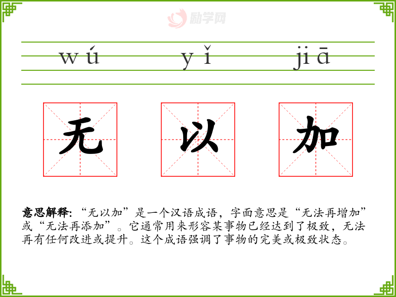 1.无以加的拼音是什么?无以加怎么读?