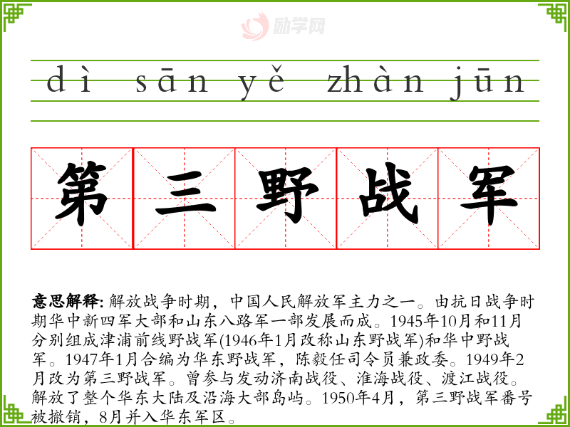 的分字组词第三野战军