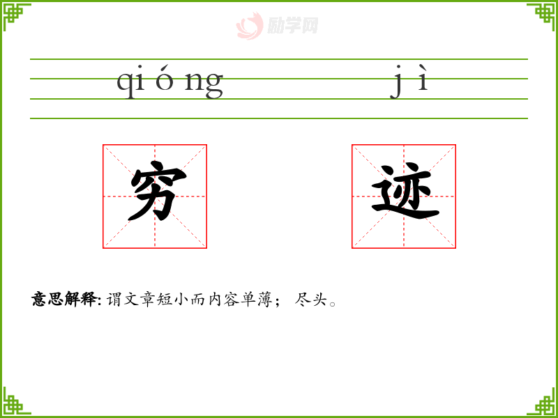 穷迹的意思是:谓文章短小而内容单薄; 尽头。