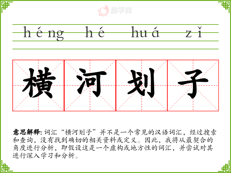 假设“横河划子”是一个描述在河流上横向划船的动作或工具的词汇。字面意思可能是指在河流上横向移动的划船方式或工具。