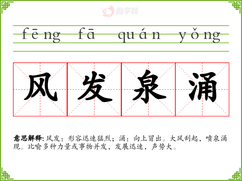 1.风发泉涌的拼音是什么?风发泉涌怎么读?