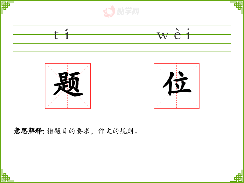 题位的意思是:指题目的要求,作文的规则。