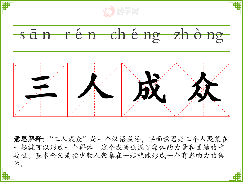 1.三人成众的拼音是什么?三人成众怎么读?