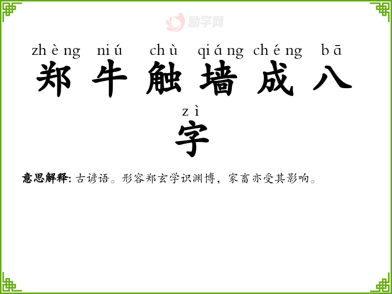 1.郑牛触墙成八字的拼音是什么?郑牛触墙成八字怎么读?