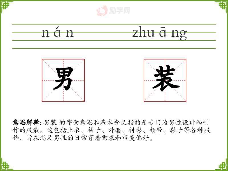 “男装”一词由“男”和“装”两个字组成。在古代汉语中,“装”字有装饰、打扮的含义,而“男”字则指男性。随着时尚产业的发展,男装的概念也在不断演变,从传统的西装、衬衫到现代的休闲装、**装等。