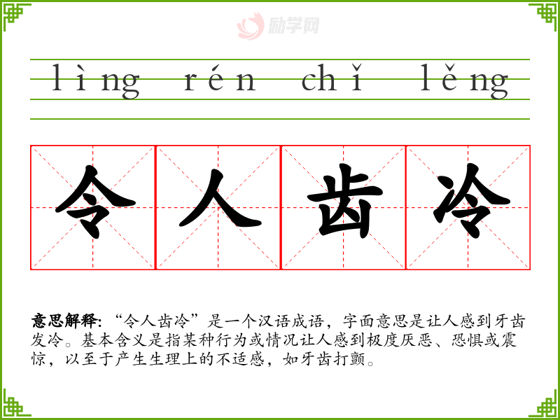 “令人齿冷”是一个汉语成语,字面意思是让人感到牙齿发冷。基本含义是指某种行为或情况让人感到极度厌恶、恐惧或震惊,以至于产生生理上的不适感,如牙齿打颤。