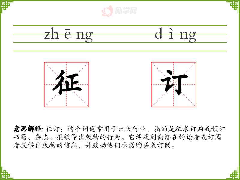 征订的拼音是:zhēng dìng