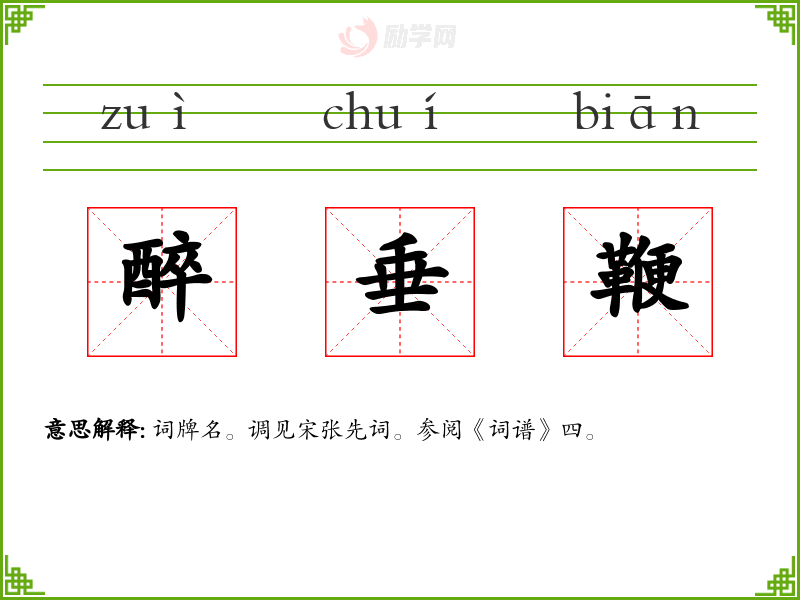 1.醉垂鞭的拼音是什么?醉垂鞭怎么读?