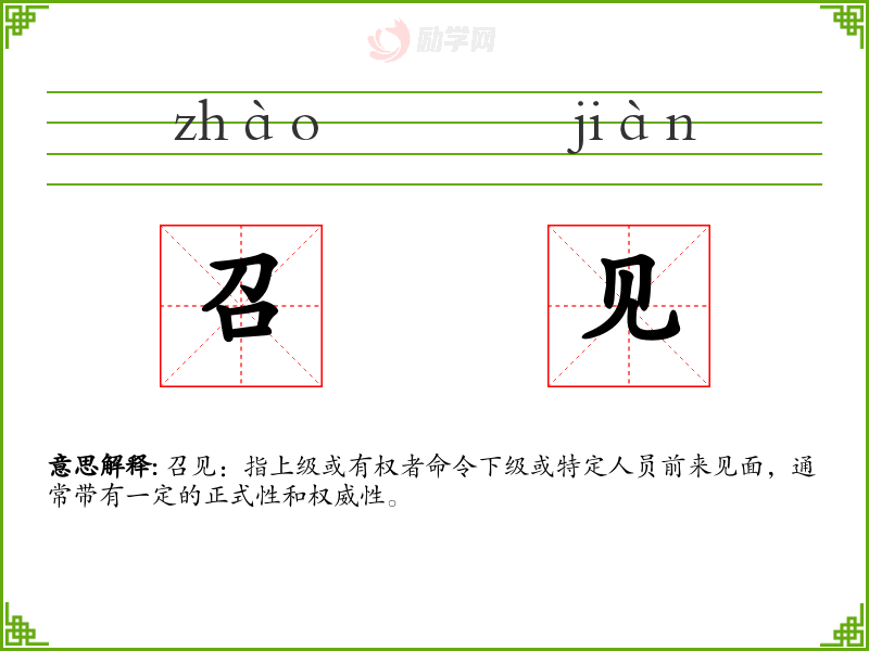 召见一词往往带有一种正式和严肃的情感色彩,可能让人联想到权威、责任和决策。