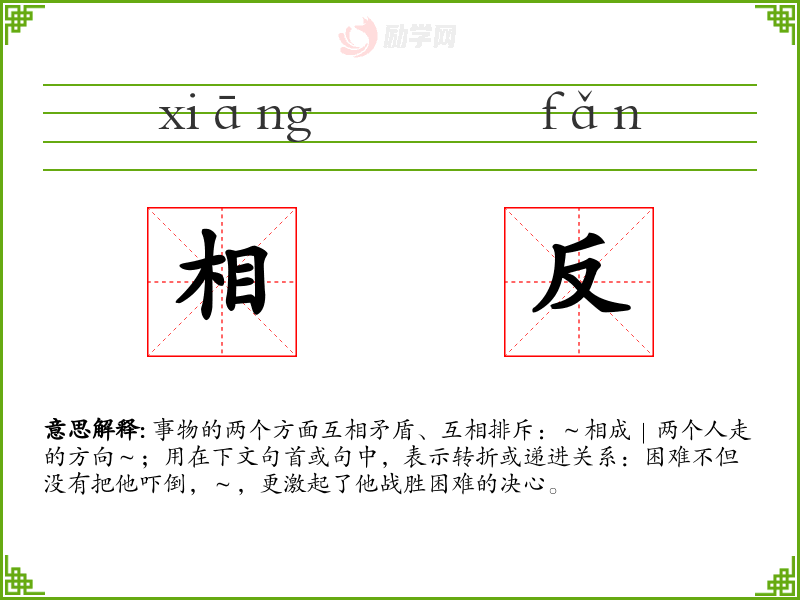 事物的两个方面互相矛盾、互相排斥:~相成|两个人走的方向~;用在下文句首或句中,表示转折或递进关系:困难不但没有把他吓倒,~,更激起了他战胜困难的决心。