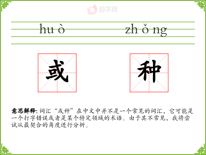 词汇“或种”在中文中并不是一个常见的词汇,它可能是一个打字错误或者是某个特定领域的术语。由于其不常见,我将尝试从最契合的角度进行分析。