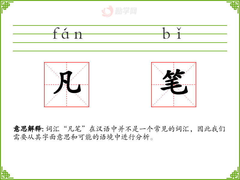 词汇“凡笔”在汉语中并不是一个常见的词汇,因此我们需要从其字面意思和可能的语境中进行分析。