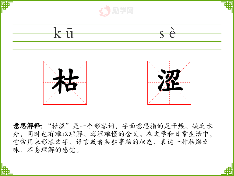 1.枯涩的拼音是什么?枯涩怎么读?