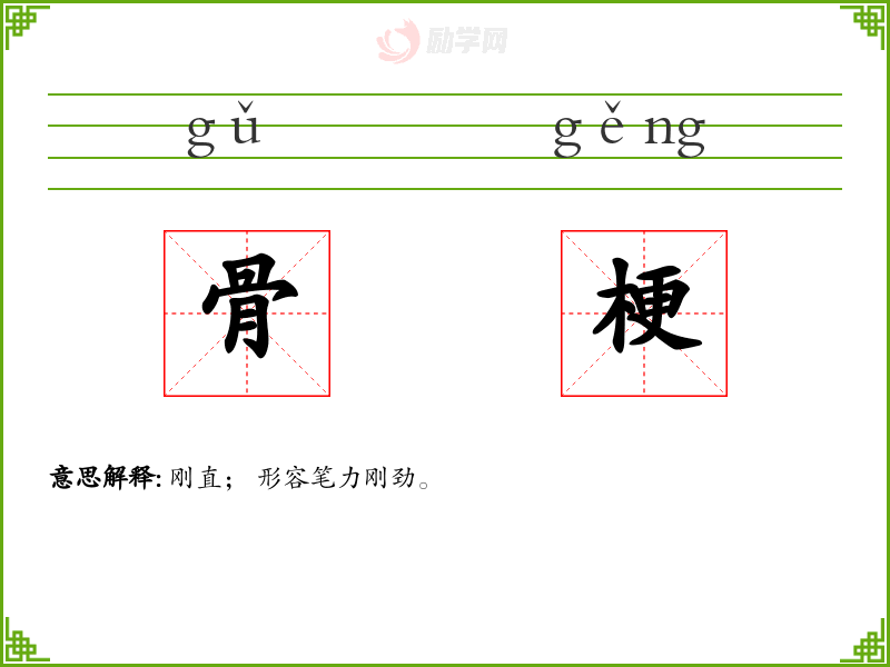 骨梗的意思是:刚直; 形容笔力刚劲。