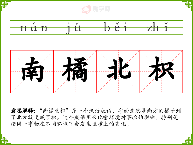 1.南橘北枳的拼音是什么?南橘北枳怎么读?