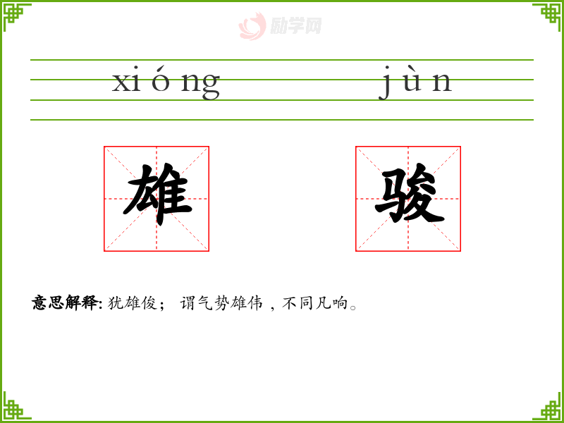 雄骏的意思是:犹雄俊; 谓气势雄伟﹐不同凡响。