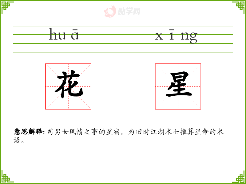 花星的意思是:司男女风情之事的星宿。为旧时江湖术士推算星命的术语。