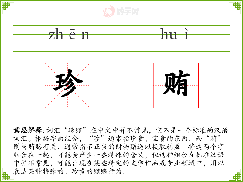 - 字面意思:珍贵的贿赂,可能指非常贵重或难以获得的贿赂物品。