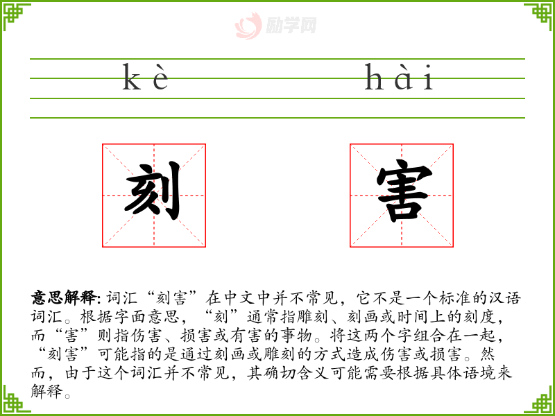 刻害的意思是:刻薄残忍; 残害;侵害。