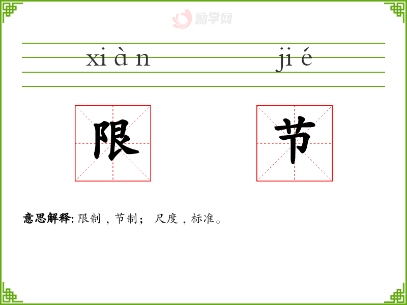 限节的意思是:限制﹐节制; 尺度﹐标准。