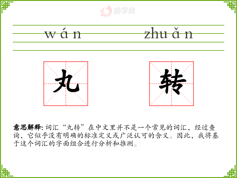 词汇“丸转”在中文里并不是一个常见的词汇,经过查询,它似乎没有明确的标准定义或广泛认可的含义。因此,我将基于这个词汇的字面组合进行分析和推测。