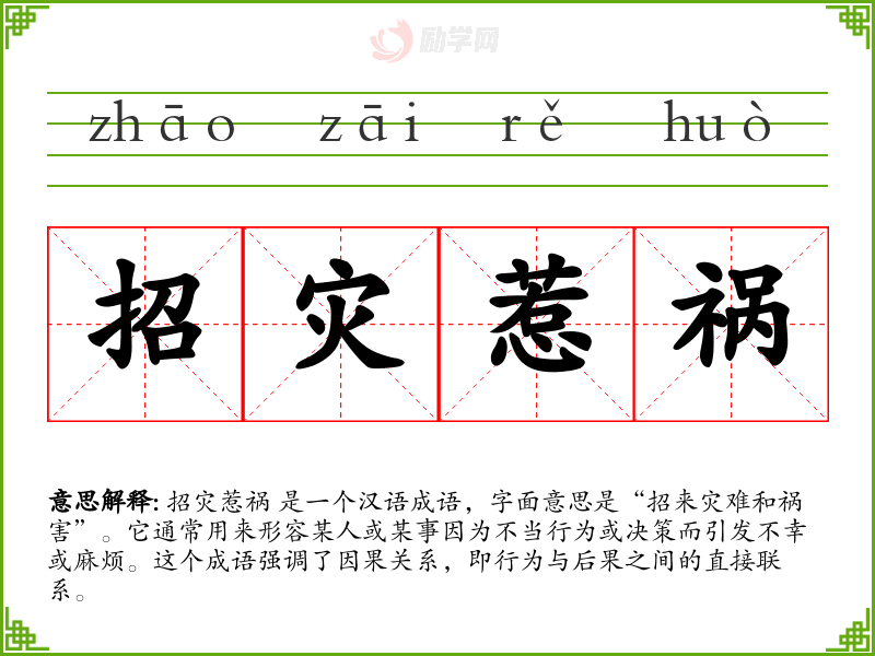 1.招灾惹祸的拼音是什么?招灾惹祸怎么读?
