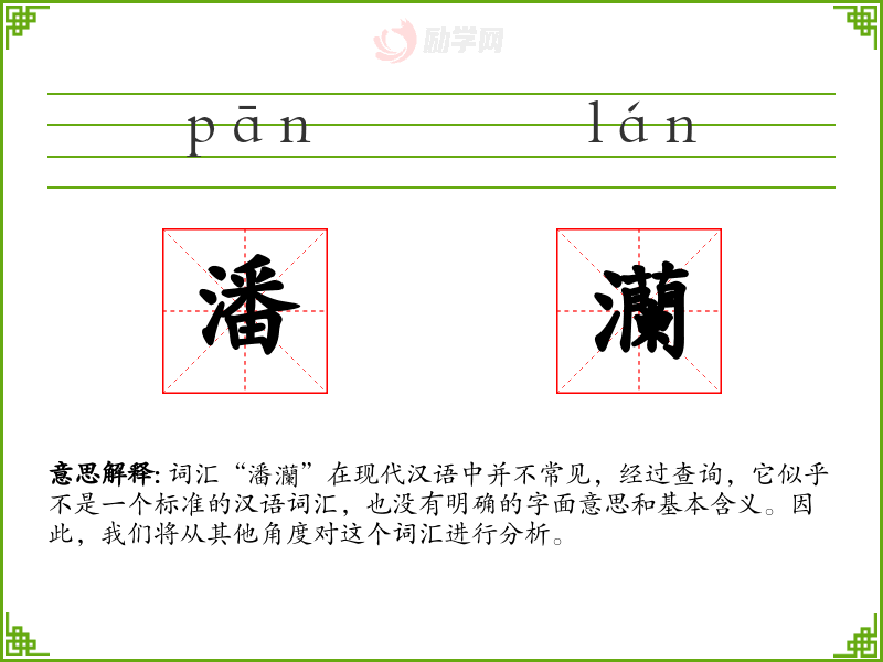 词汇“潘灡”在现代汉语中并不常见,经过查询,它似乎不是一个标准的汉语词汇,也没有明确的字面意思和基本含义。因此,我们将从其他角度对这个词汇进行分析。