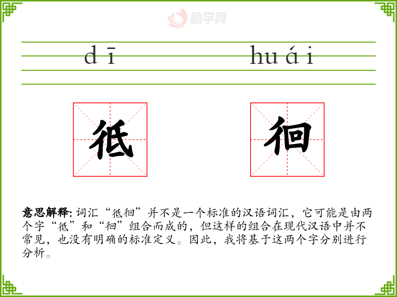 词汇“彽徊”并不是一个标准的汉语词汇,它可能是由两个字“彽”和“徊”组合而成的,但这样的组合在现代汉语中并不常见,也没有明确的标准定义。因此,我将基于这两个字分别进行分析。
