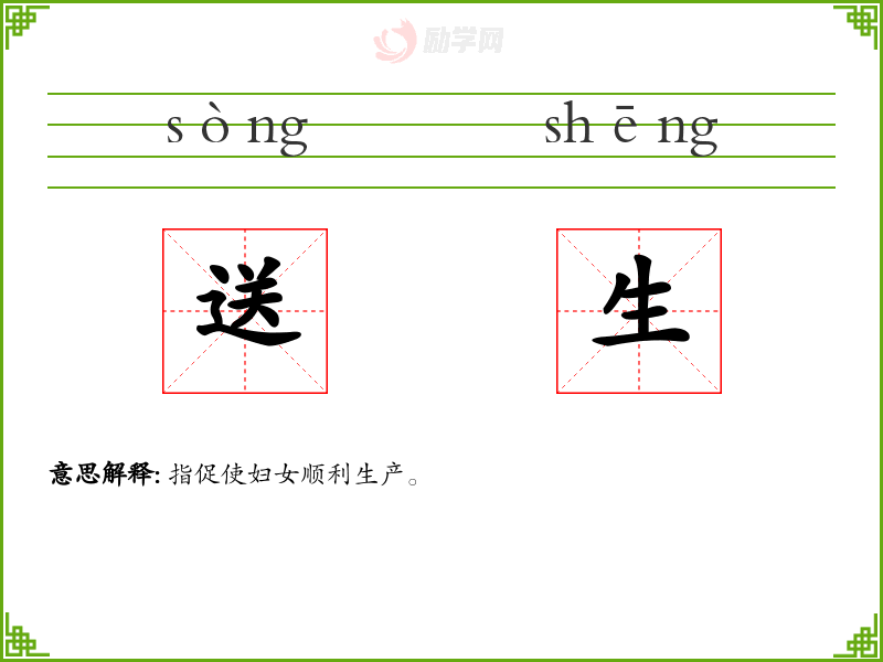 《说文》。-送,遣也。 《荀子·富国》。注:“致女也。”-送迎无礼。