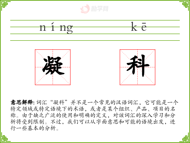 由于“凝科”不是一个常见词汇,对其的理解和分析受到限制。如果它是一个特定领域或语境下的术语,那么它的重要性将取决于该领域或语境的特定需求和背景。在语言学*和表达中,了解特定领域或语境下的专业术语是重要的,但“凝科”作为一个词汇,其普遍性和实用性可能有限。