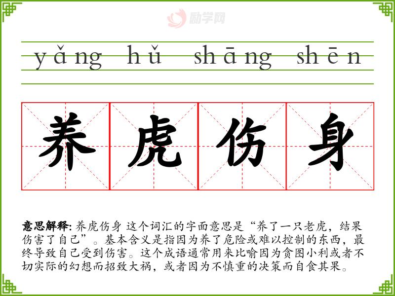 1.养虎伤身的拼音是什么?养虎伤身怎么读?
