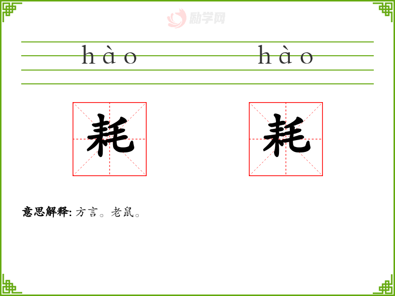 耗耗的意思是:方言。老鼠。