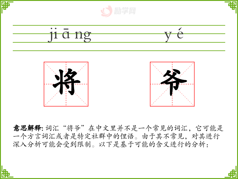 1.将爷的拼音是什么?将爷怎么读?